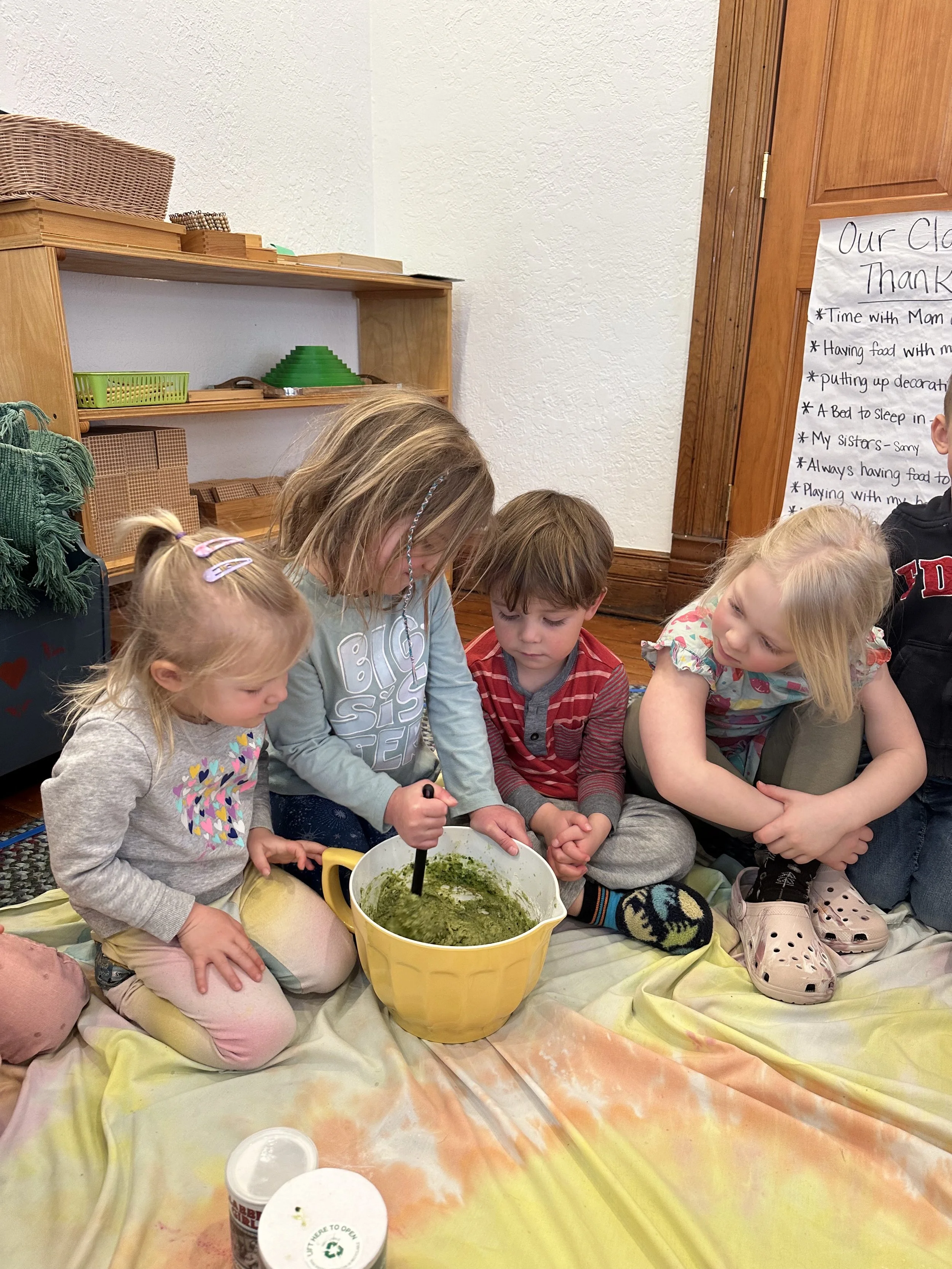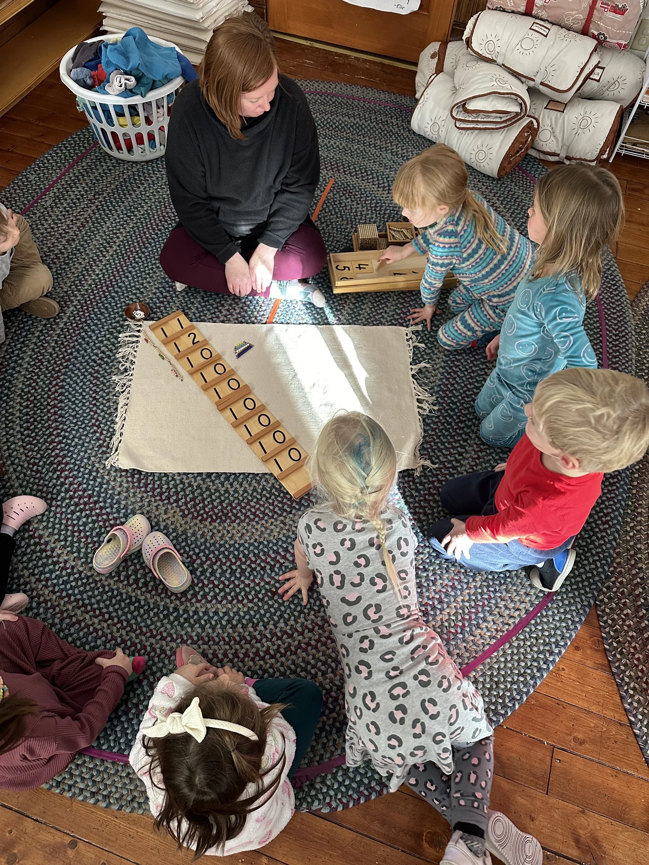 We are a mixed aged classroom, ages 2.5 to 6, allowing for younger students to learn and build social-emotional skills by observing and interacting with older peers, while older students reinforce their knowledge and confidence by mentoring younger classmates.